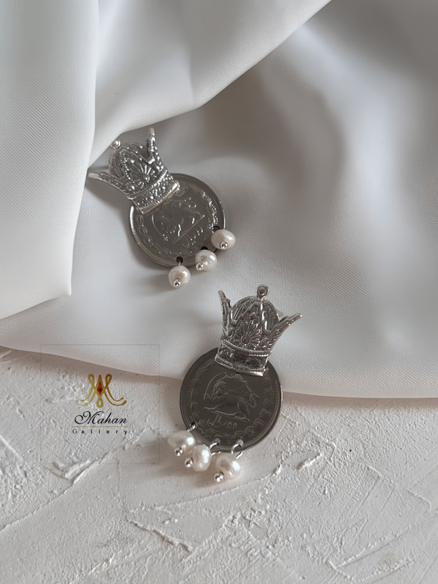 تاج و ميخ گوشواره و اتصالات مرواريدهاي پرورشي به سكه نقره ميباشد