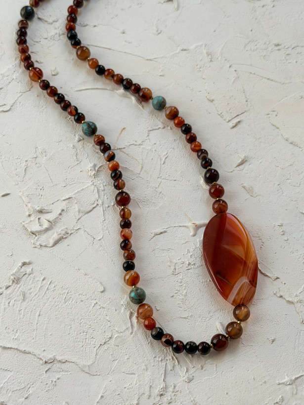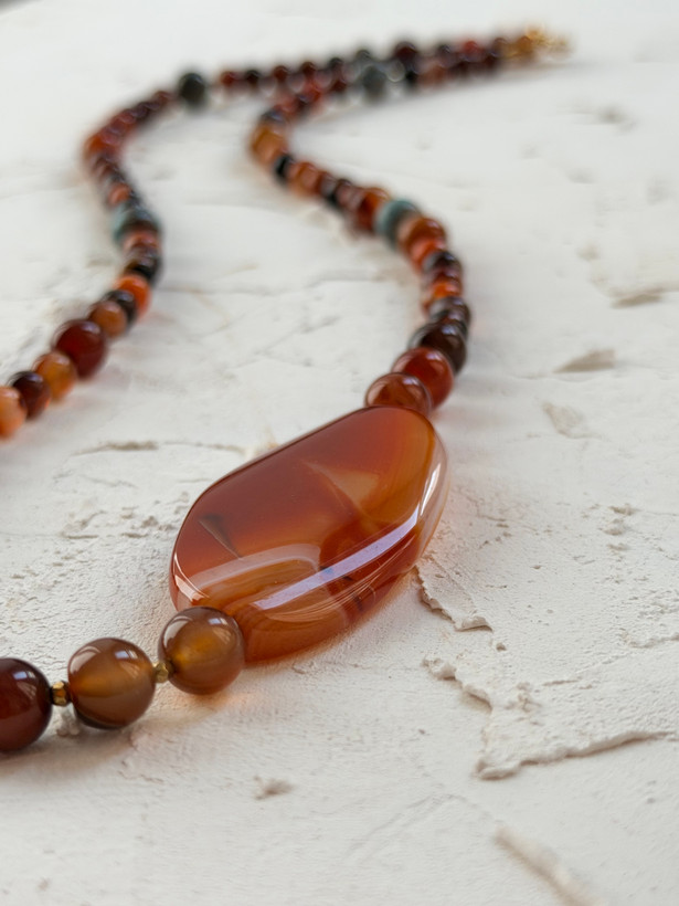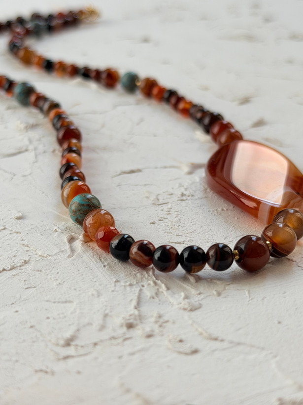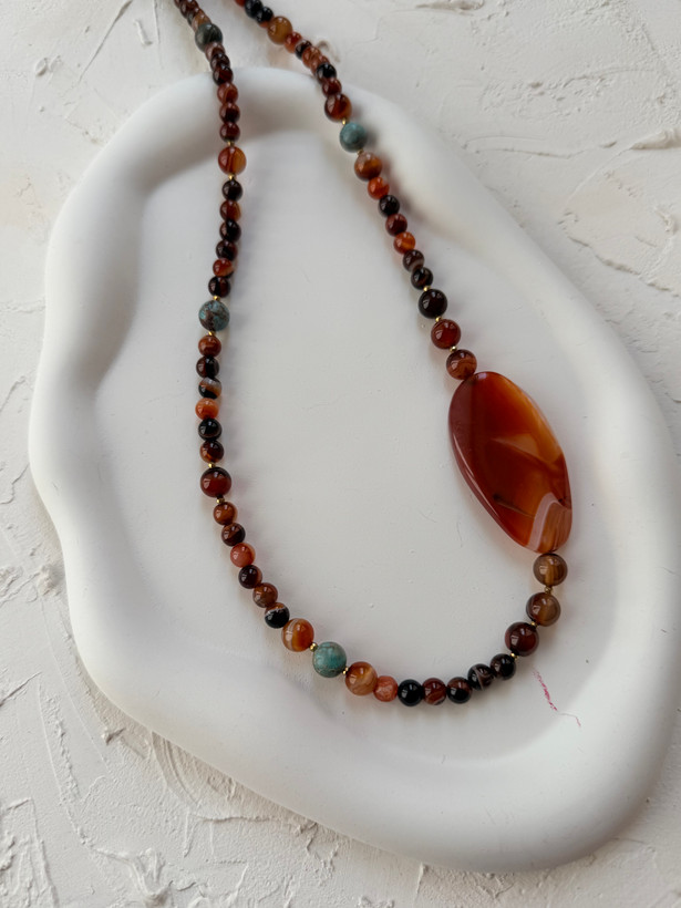سنگ عقيق بزرگ داخل اين گردنبند يكطرفه هست كه اين كارو بسيار خاص و متفاوت كرده🤗