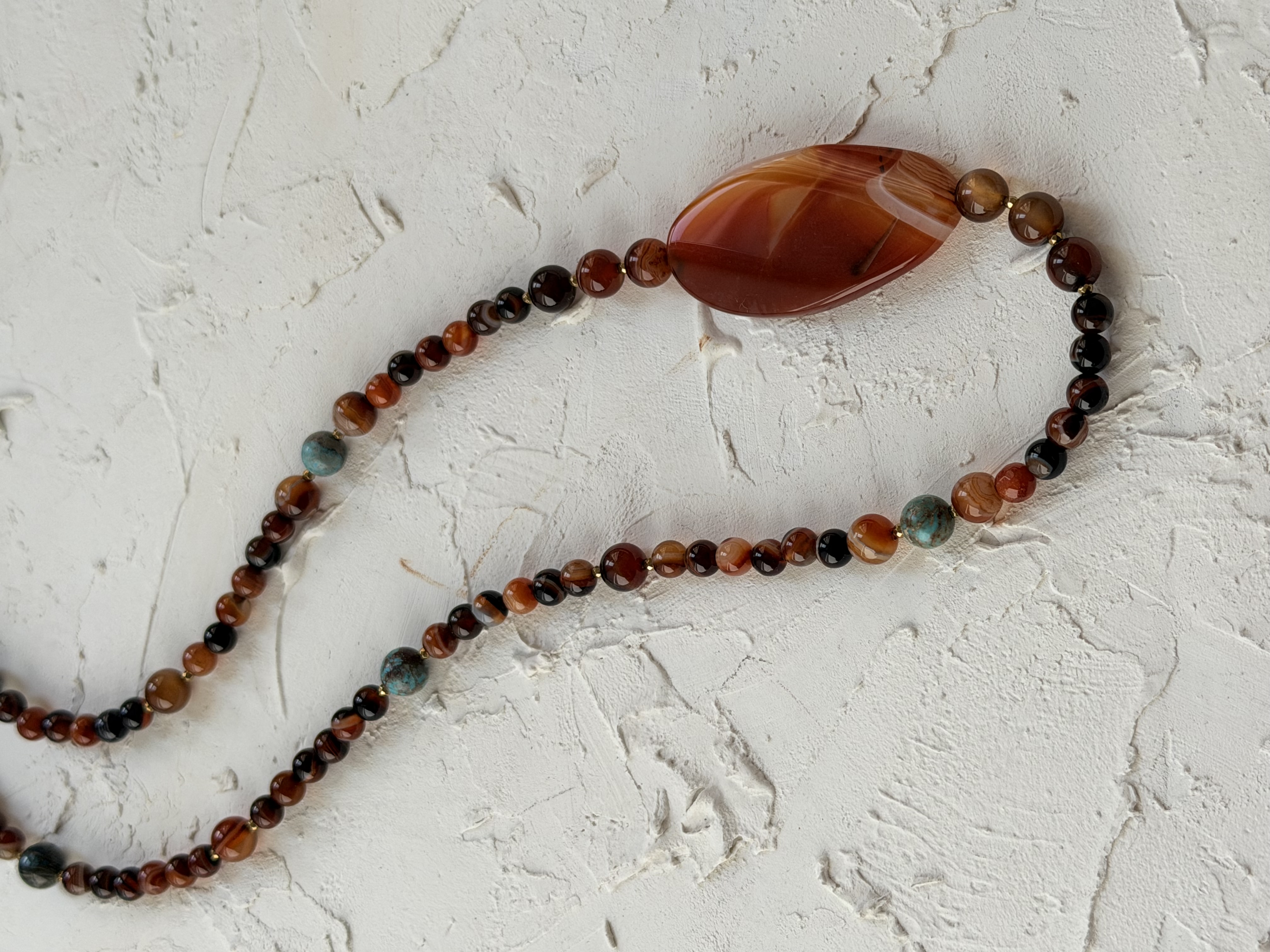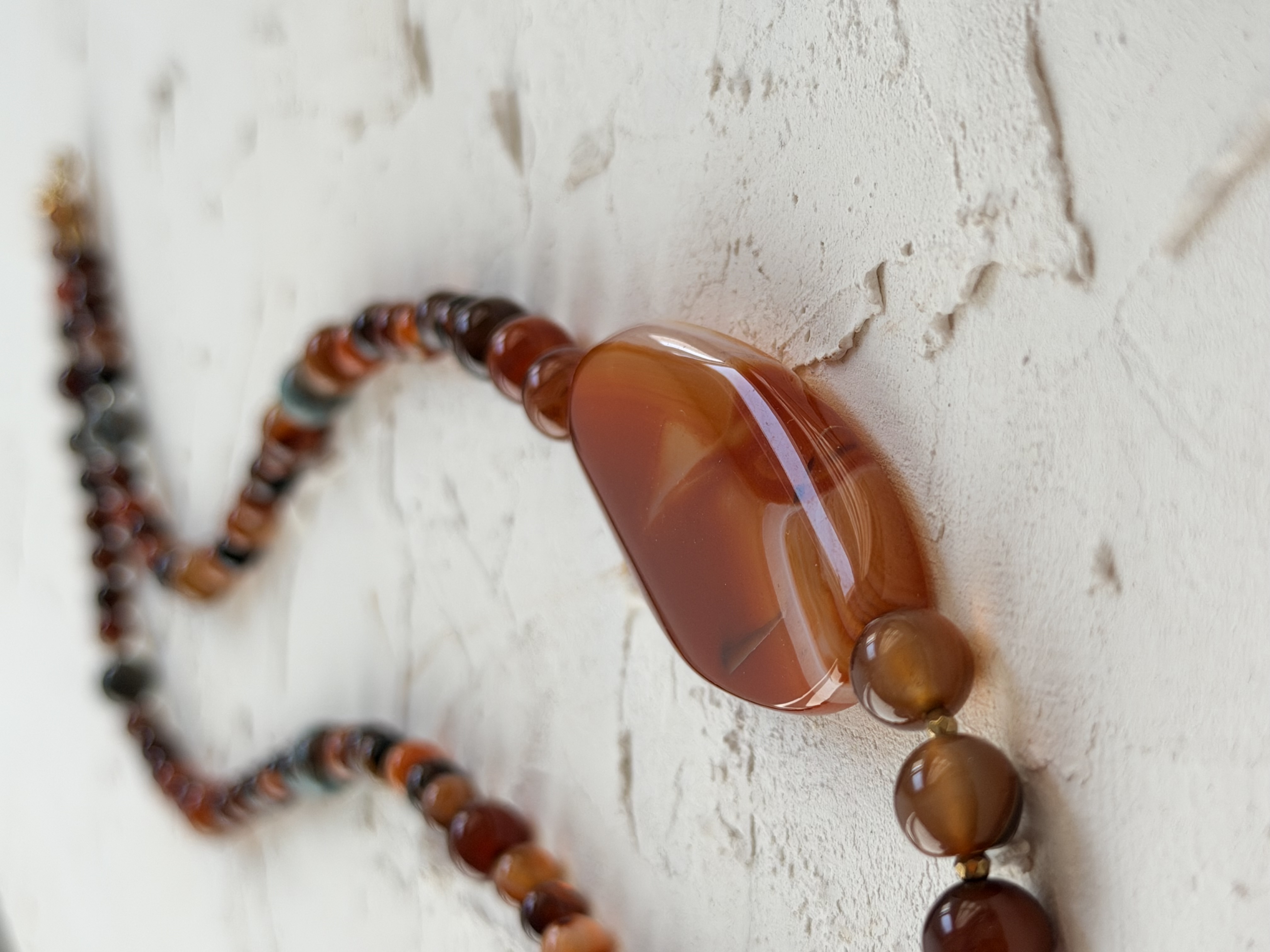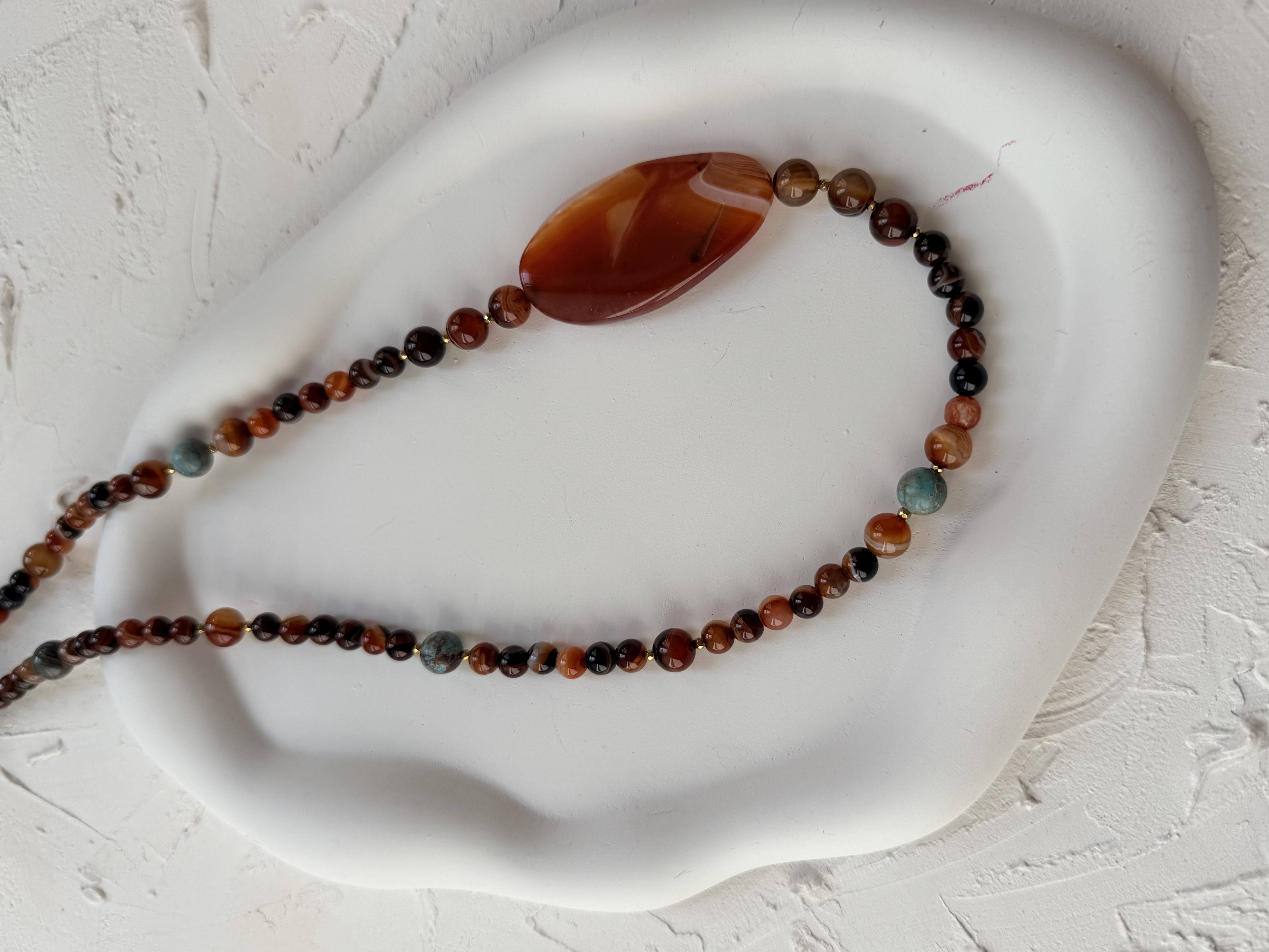 سنگ عقيق بزرگ داخل اين گردنبند يكطرفه هست كه اين كارو بسيار خاص و متفاوت كرده🤗