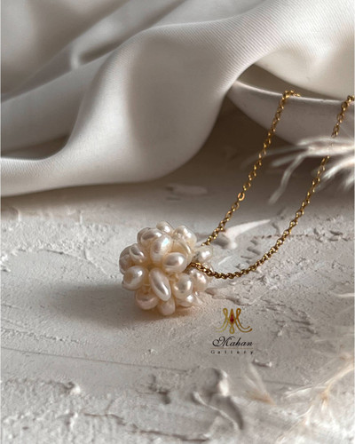 گردنبند استیل رنگ ثابت طرح توپک مروارید پرورشی