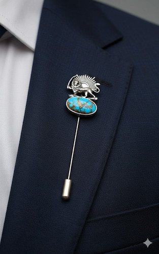 گلسینه(بج،بروچ)کت مردانه نقره با فیروزه نیسابور