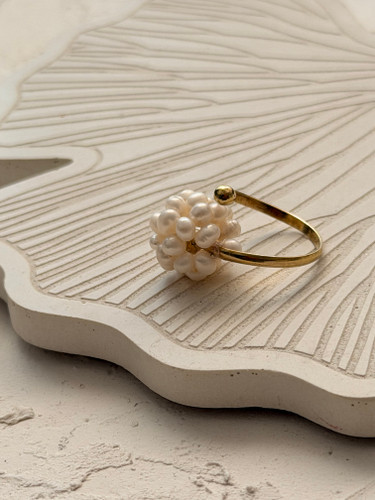 گوشواره مرواریدی طرح توپک با حلقه استیل رنگ ثابت