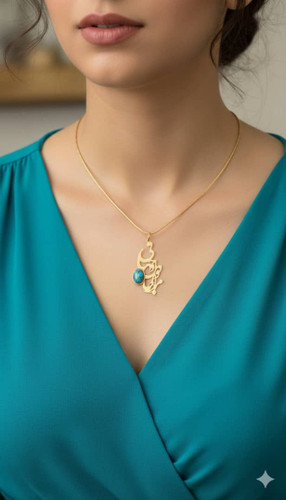 گردنبند دستساز تومرا جان و جهانی با نگین فیروزه با جنس برنج