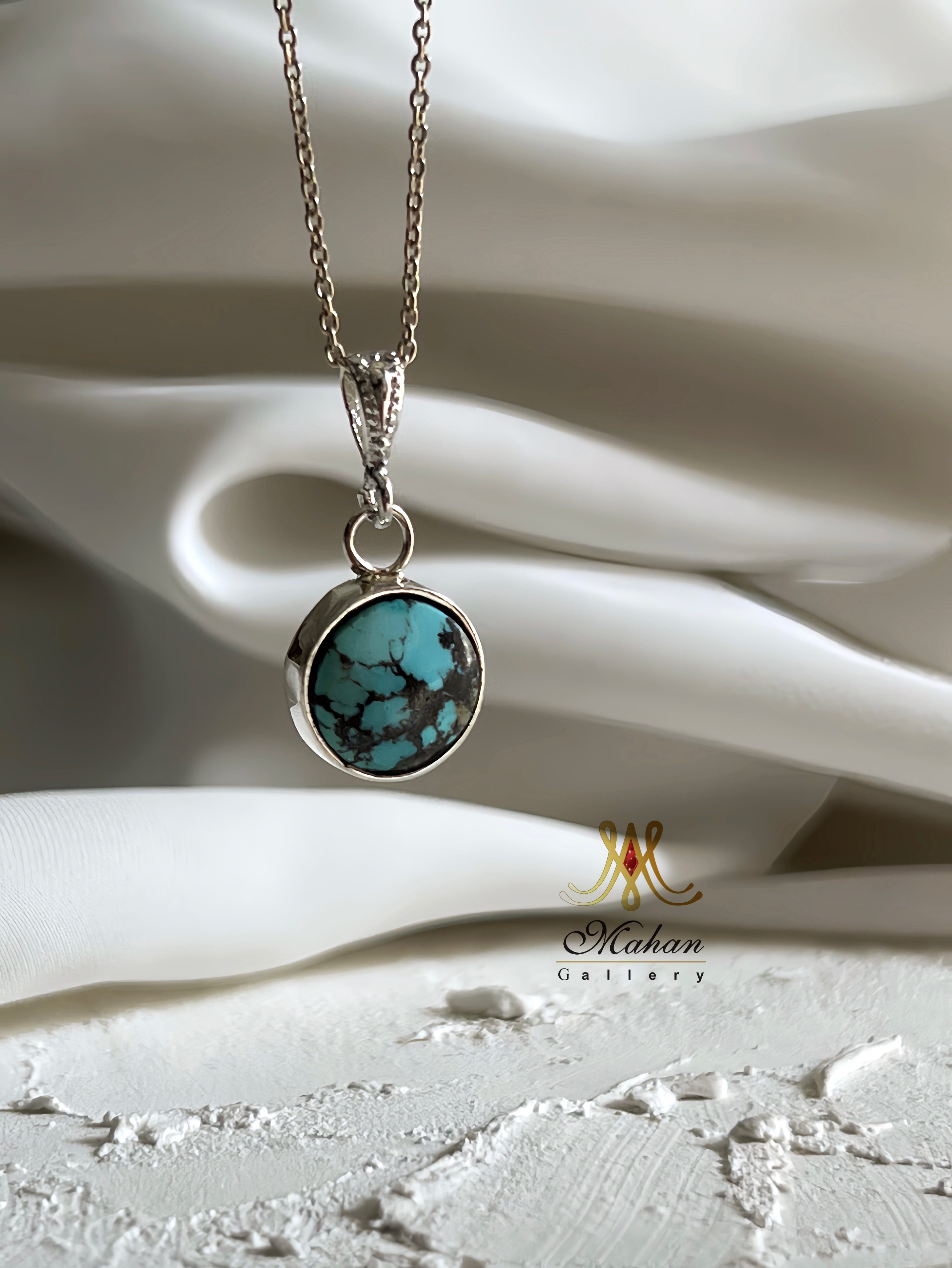 گردنبند فیروزه نیشابور نقره دستساز با زنجیر