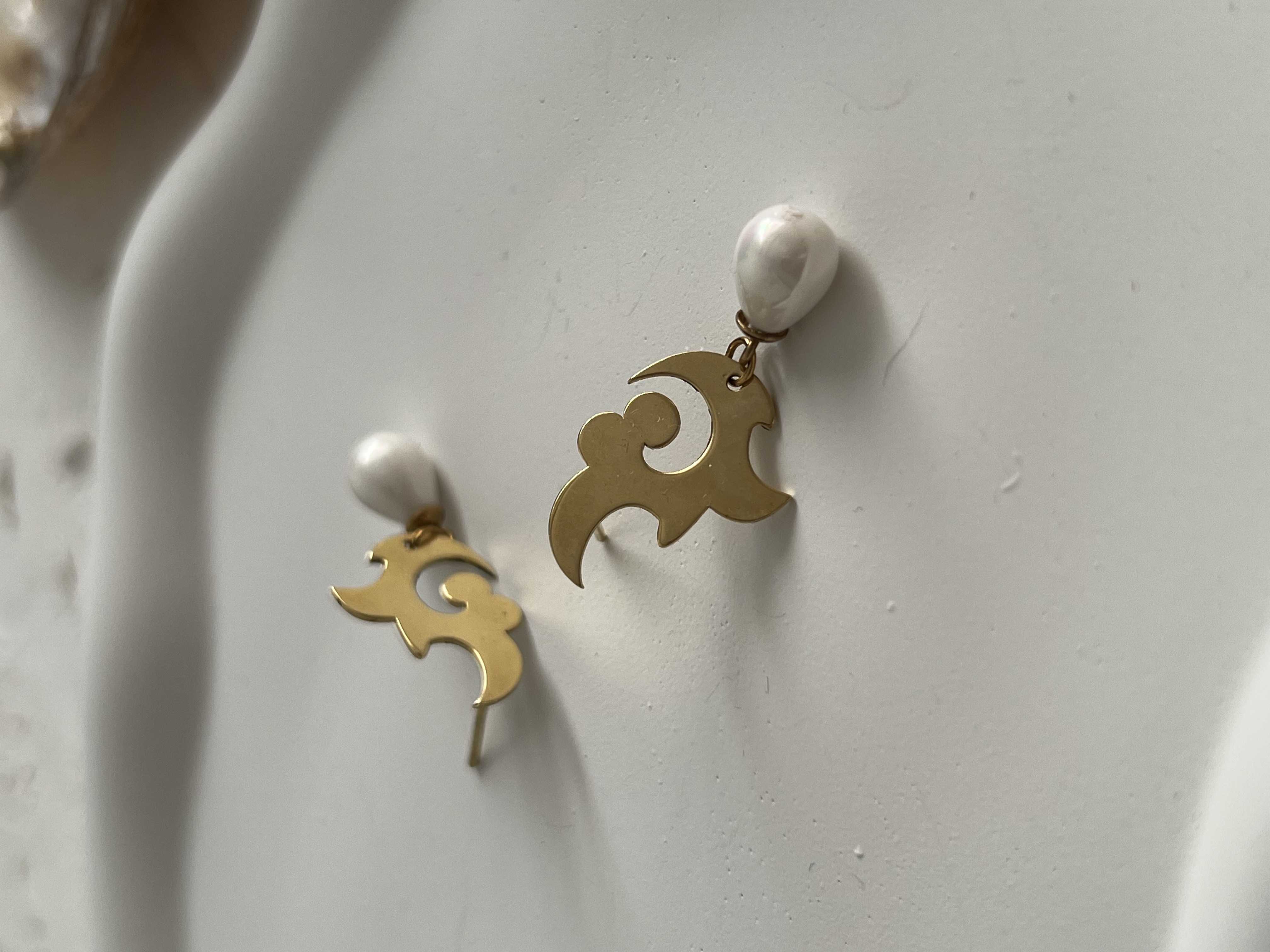 گوشواره سکه برنجی دستسازبا آویز مروارید