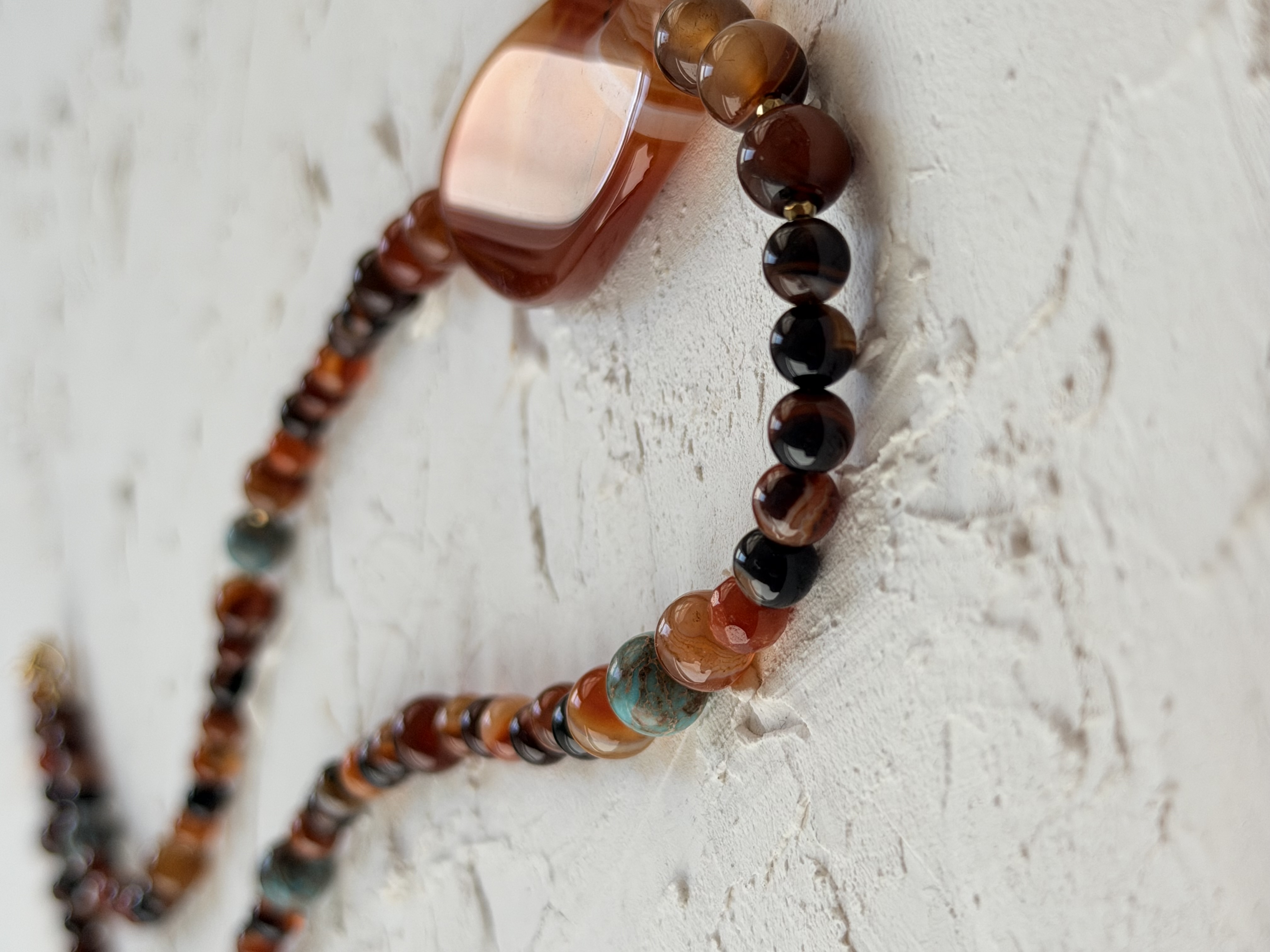 گردنبند عقیق و فیروزه با قفل استیل و سنگ های درجه یک