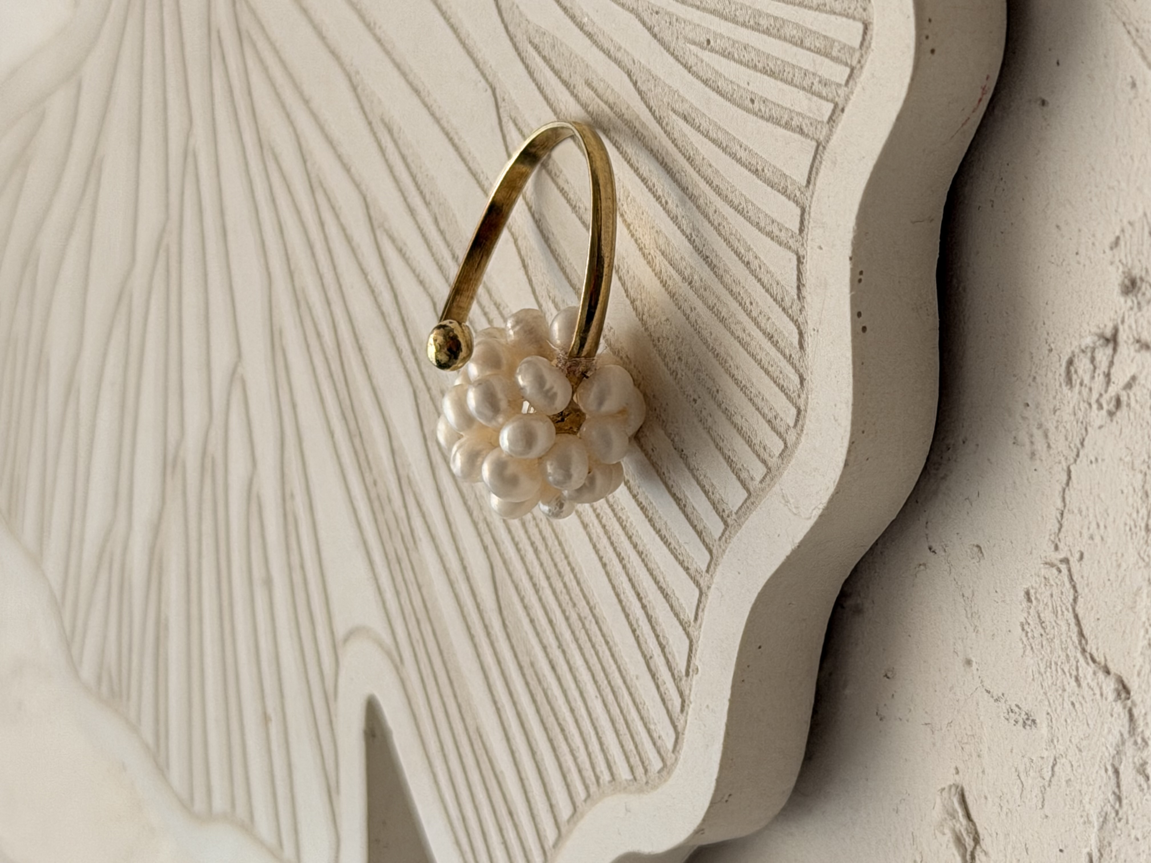 گوشواره مرواریدی طرح توپک با حلقه استیل رنگ ثابت